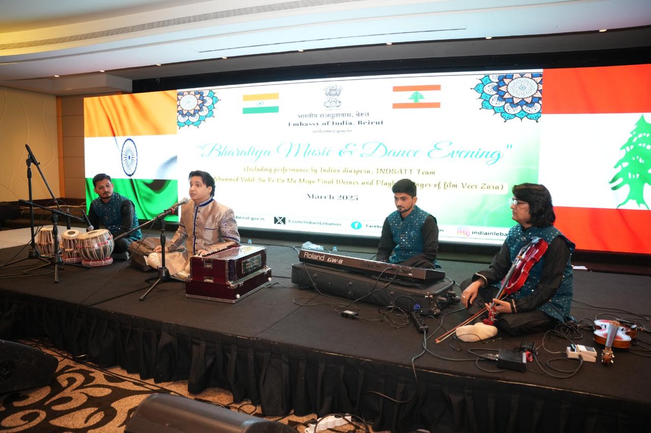 India in Lebanon (Embassy of India, Beirut) organised a heartfelt ‘Bharatiya Music & Dance Evening’ as part of ‘Promotion of Cultural Ties with Diaspora’ in Beirut. Ambassador Noor Rahman Sheikh welcomed the diaspora & encouraged them to remain connected with Bharatiya culture. Bollywood Playback Singer Mohammed Vakil, Indian Council For Cultural Relations Dance Teacher, Members of Indian diaspora and INDBATT team gave mesmerizing music & dance performances. Former MOS for External Affairs Shri V Muraleedharan also graced the event; and with Ambassador Noor Rahman Sheikh, presented the artists with certificates of appreciation.