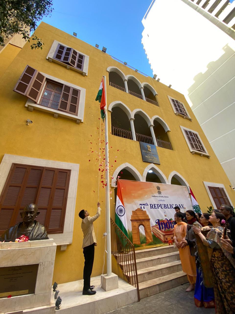 India celebrated the 77th Republic Day today at Embassy of India, Beirut and INDBATT XXVI, Ebel Saqi